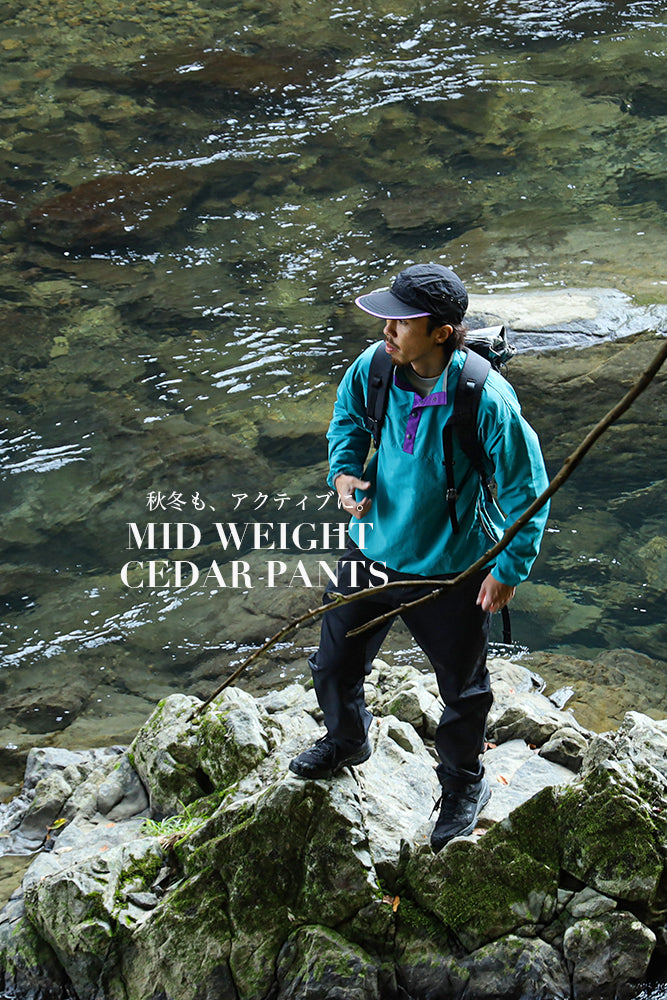 秋冬も、アクティブに。ミドルウェイトの定番パンツ 「MID WEIGHT CEDAR PANTS」