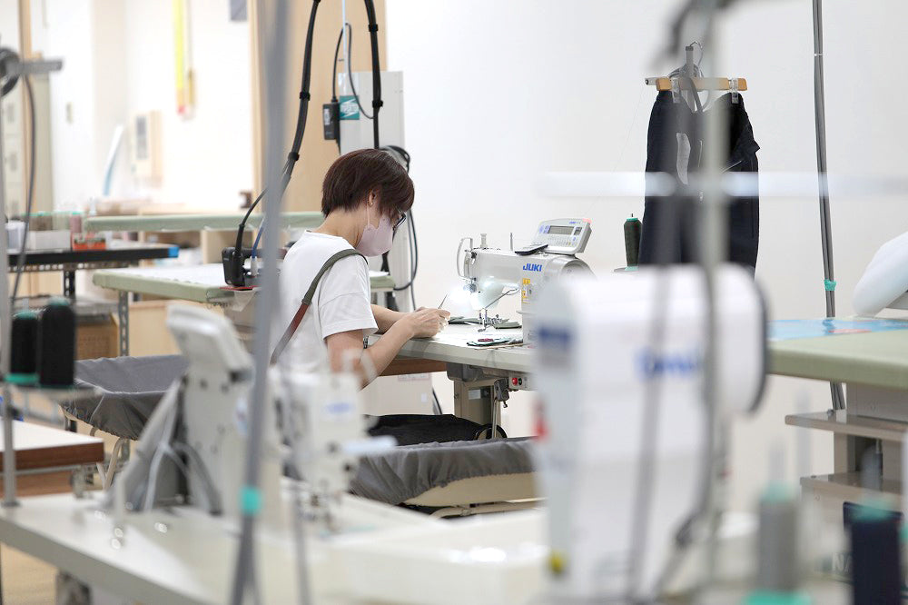 海まで歩いて3 分の環境の中、丁寧な縫製を心掛け生産しています。